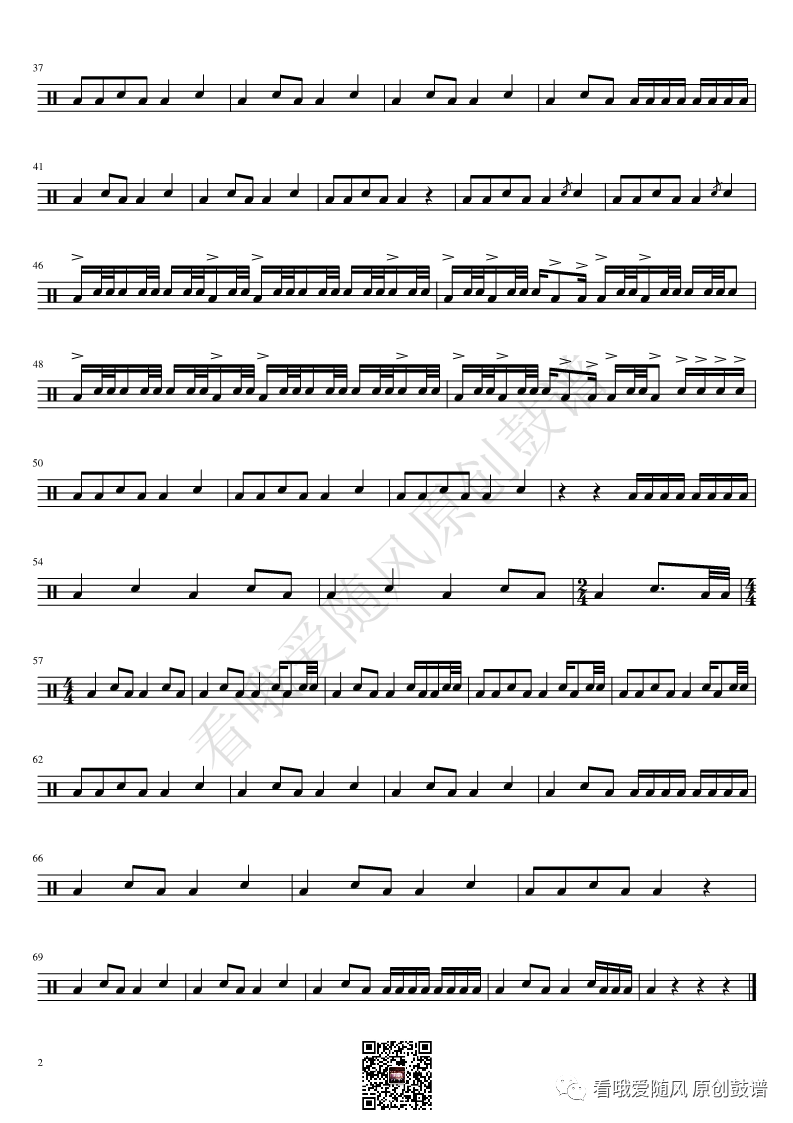 ONEOKROCK《未完成交響曲》架子鼓谱,看哦爱随风编配出品,共有1张高清图谱,由打鼓谱上传并分享。