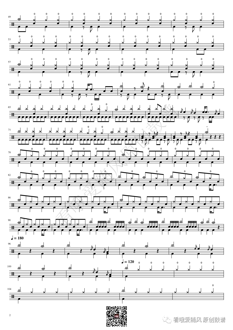 ONEOKROCK《IWasKing》架子鼓谱,看哦爱随风编配出品,共有2张高清图谱,由打鼓谱上传并分享。