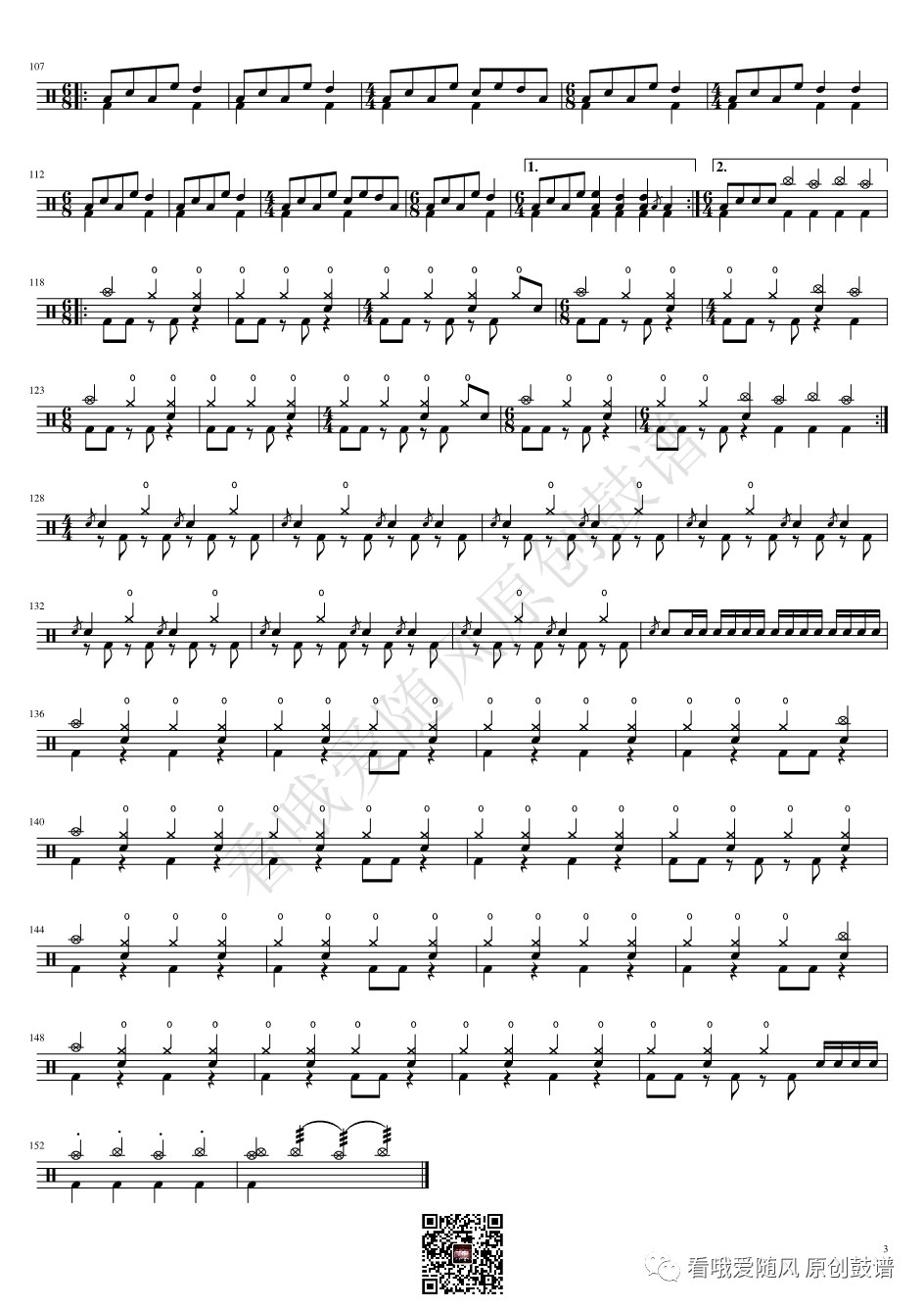 九宝乐队《十丈铜嘴》架子鼓谱, 看哦爱随风编配出品,共有3张高清图谱,由打鼓谱上传并分享。NO.637 十丈铜嘴【九宝乐队】鼓谱