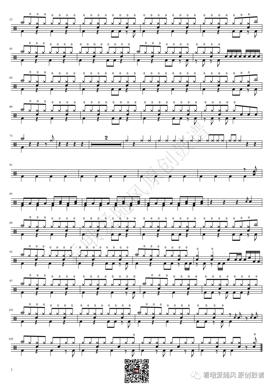 ONEOKROCK《IWasKing》架子鼓谱,看哦爱随风编配出品,共有2张高清图谱,由打鼓谱上传并分享。