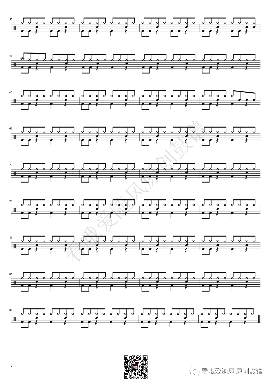 ONEOKROCK《IWasKing》架子鼓谱,看哦爱随风编配出品,共有2张高清图谱,由打鼓谱上传并分享。