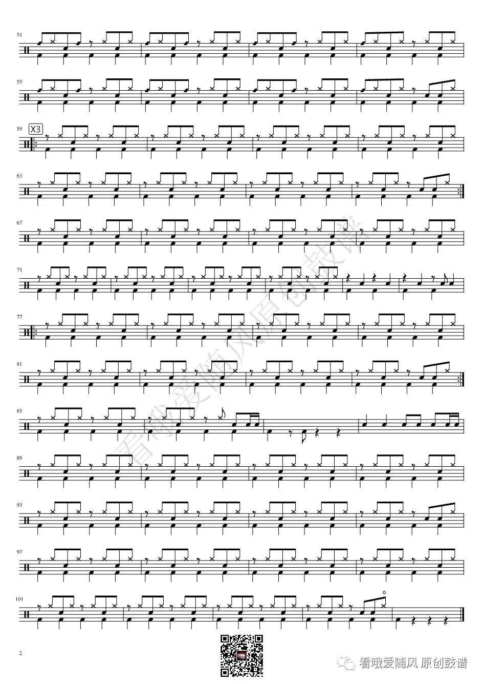 ONEOKROCK《IWasKing》架子鼓谱,看哦爱随风编配出品,共有2张高清图谱,由打鼓谱上传并分享。