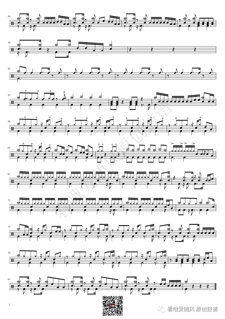 ONEOKROCK《未完成交響曲》架子鼓谱,看哦爱随风编配出品,共有1张高清图谱,由打鼓谱上传并分享。