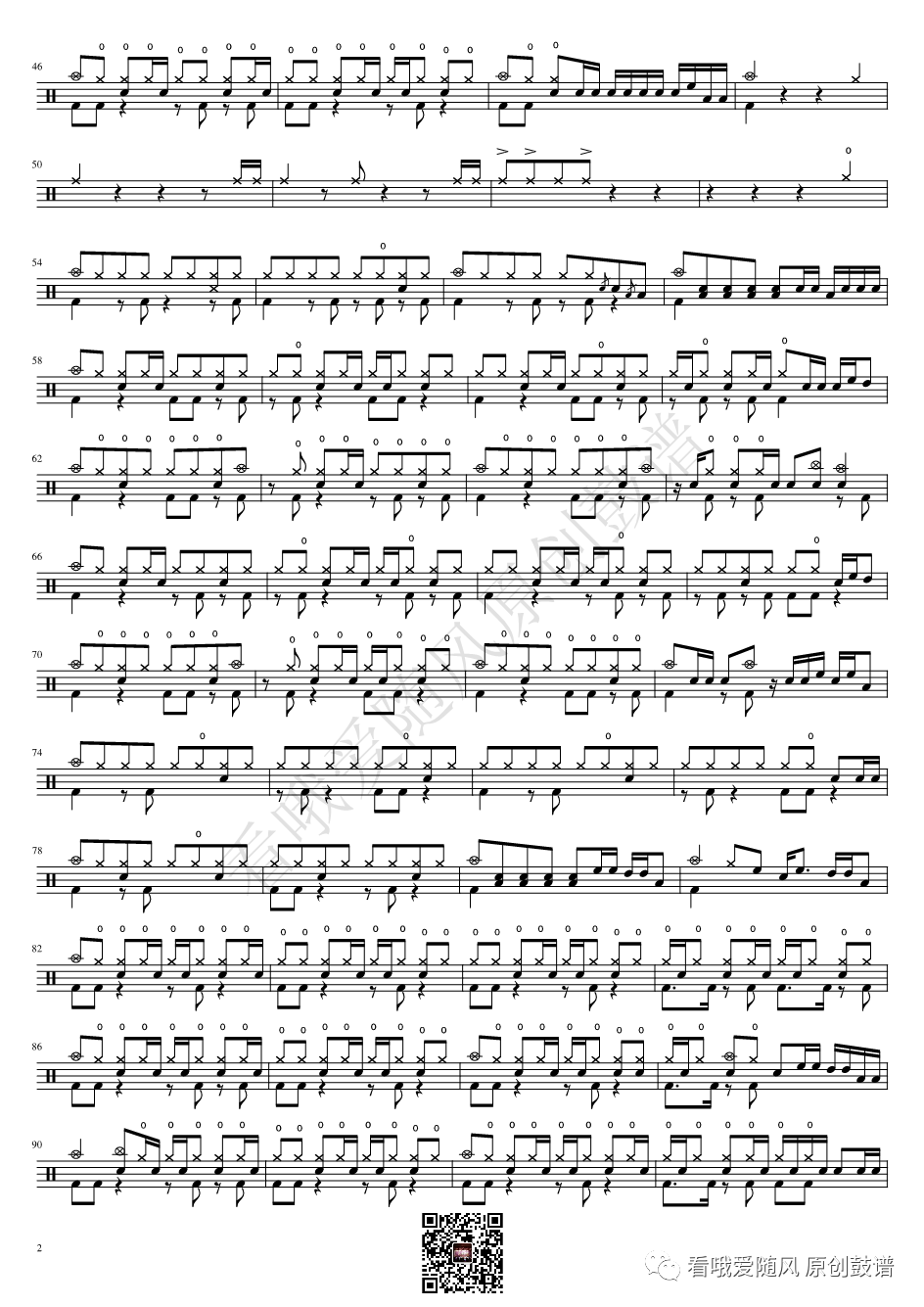ONEOKROCK《IWasKing》架子鼓谱,看哦爱随风编配出品,共有2张高清图谱,由打鼓谱上传并分享。
