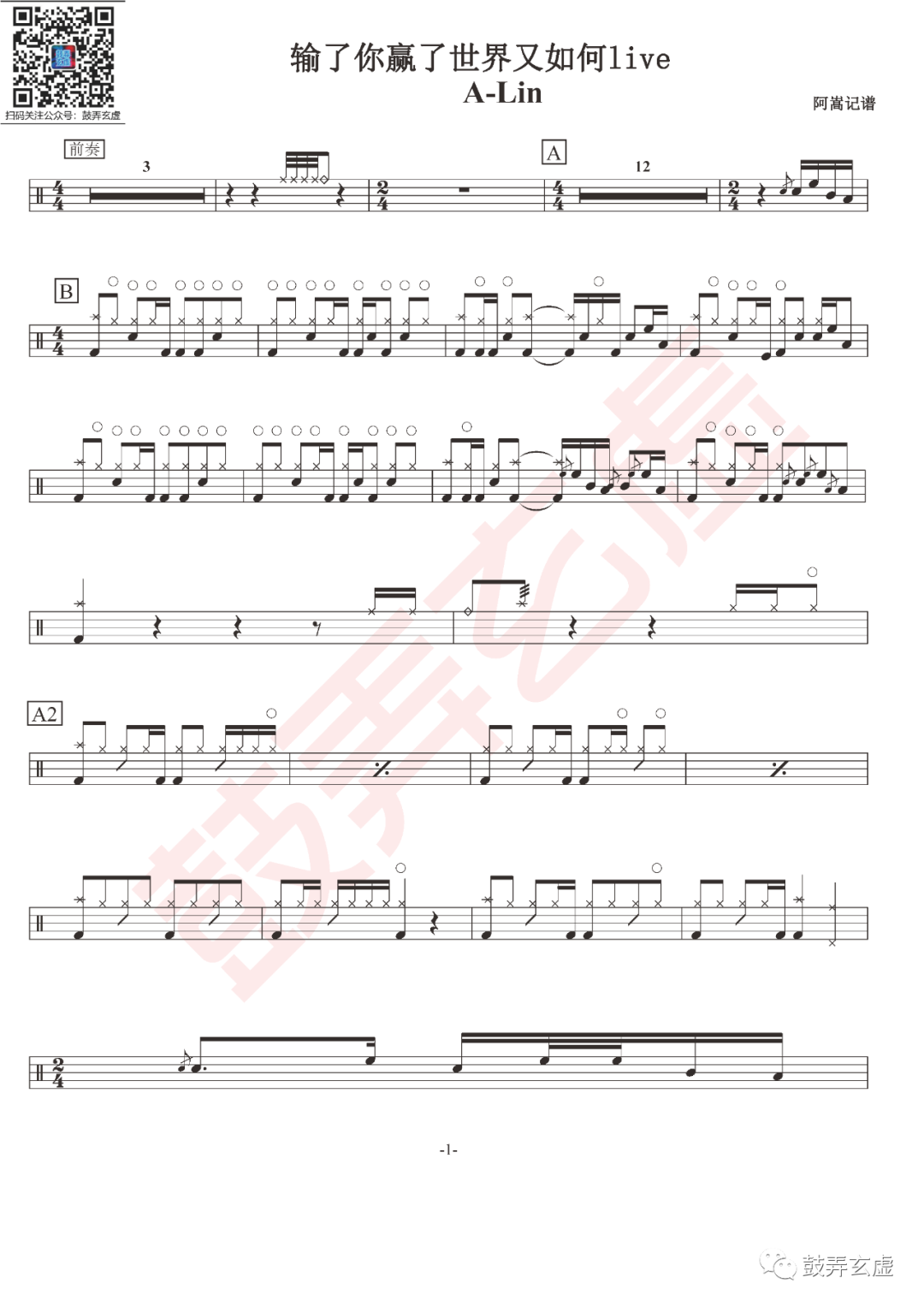 A-Lin《输了你赢了世界又如何live》架子鼓谱,鼓弄玄虚编配出品,共有2张高清图谱,由打鼓谱上传并分享。鼓谱:《输了你赢了世界又如何live》—A-Lin