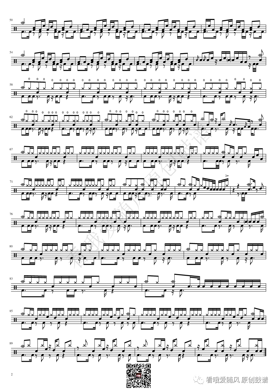 ONEOKROCK《IWasKing》架子鼓谱,看哦爱随风编配出品,共有2张高清图谱,由打鼓谱上传并分享。
