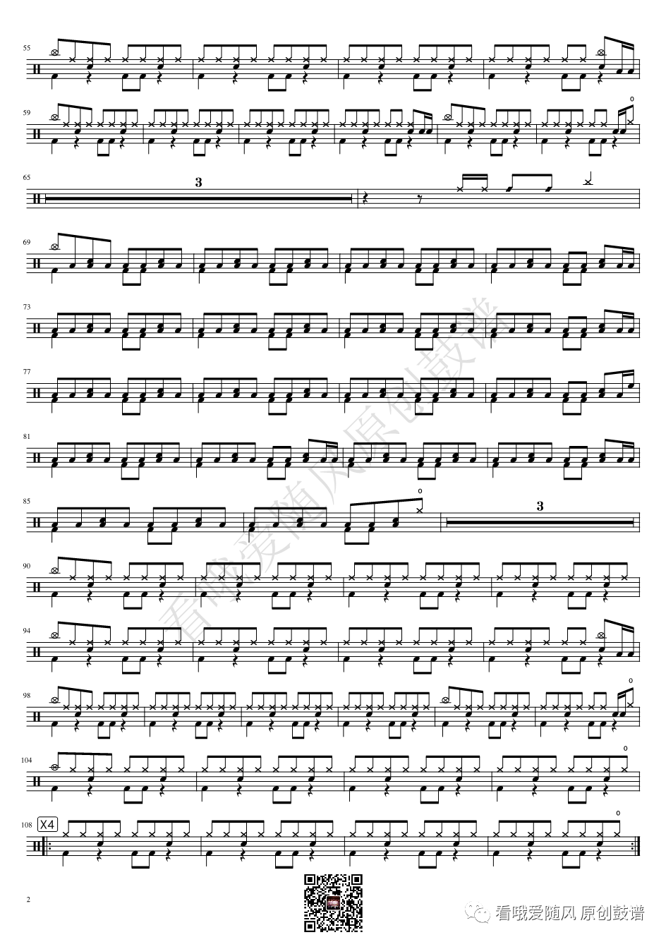 ONEOKROCK《IWasKing》架子鼓谱,看哦爱随风编配出品,共有2张高清图谱,由打鼓谱上传并分享。