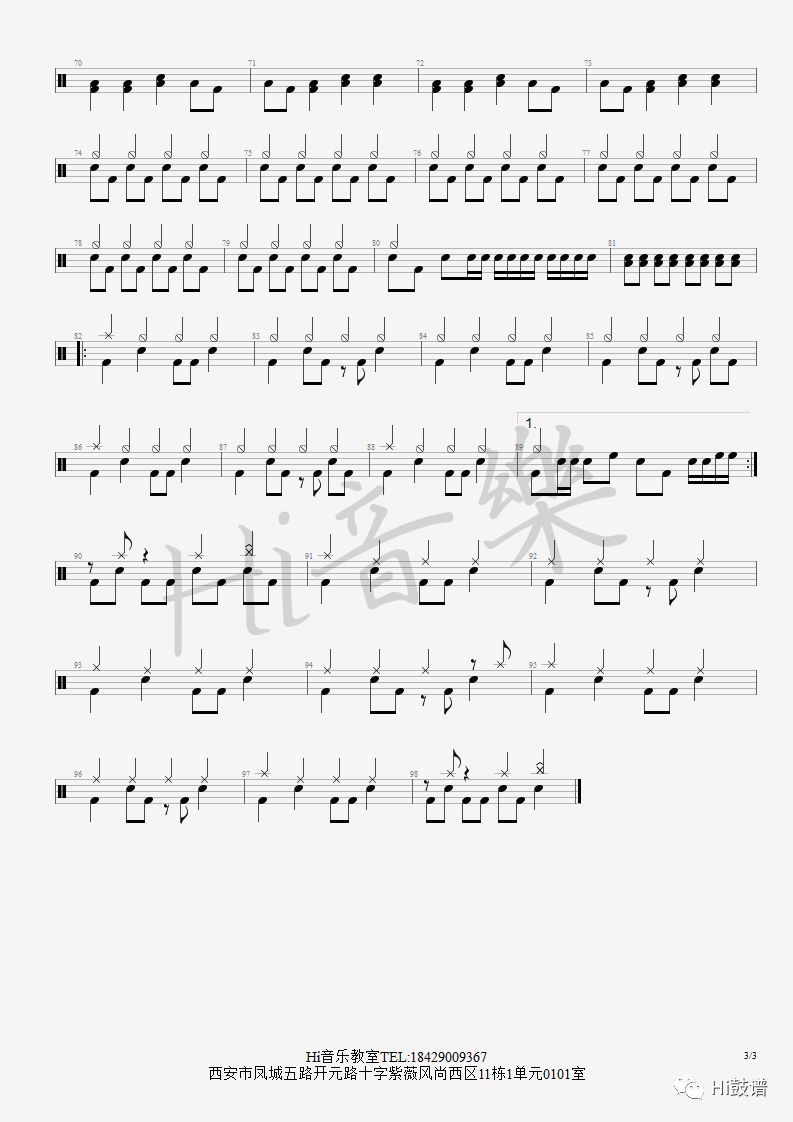 ONEOKROCK《IWasKing》架子鼓谱,看哦爱随风编配出品,共有2张高清图谱,由打鼓谱上传并分享。