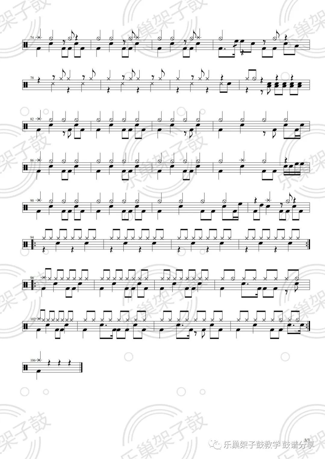 ONEOKROCK《Re:make》架子鼓谱,看哦爱随风编配出品,共有3张高清图谱,由打鼓谱上传并分享。
