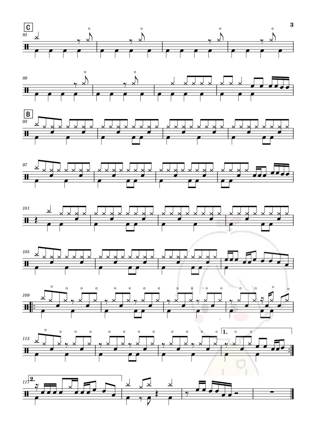ONEOKROCK《Re:make》架子鼓谱,看哦爱随风编配出品,共有3张高清图谱,由打鼓谱上传并分享。