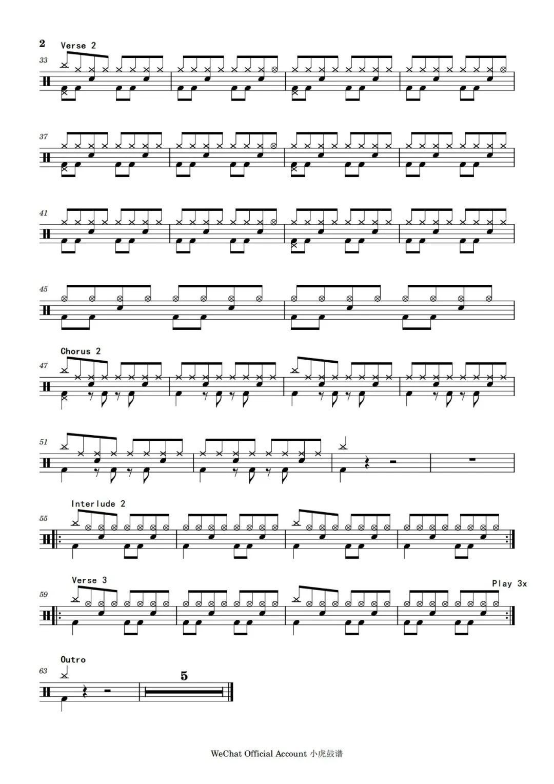 Coldplay《Yellow》架子鼓谱,小虎鼓谱编配出品,共有2张高清图谱,由打鼓谱上传并分享。Coldplay - Yellow