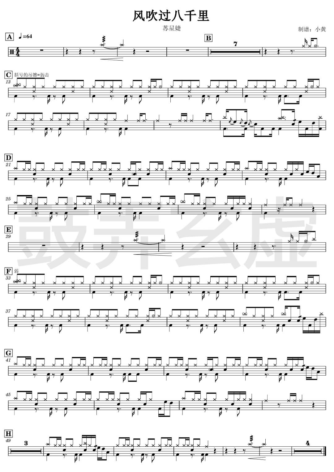 MYFIRSTSTORY《MissingYou》架子鼓谱,看哦爱随风编配出品,共有1张高清图谱,由打鼓谱上传并分享。