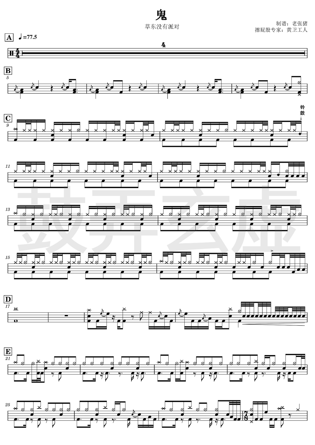 如龙维新OP《ClockStrikes》架子鼓谱,看哦爱随风编配出品,共有1张高清图谱,由打鼓谱上传并分享。
