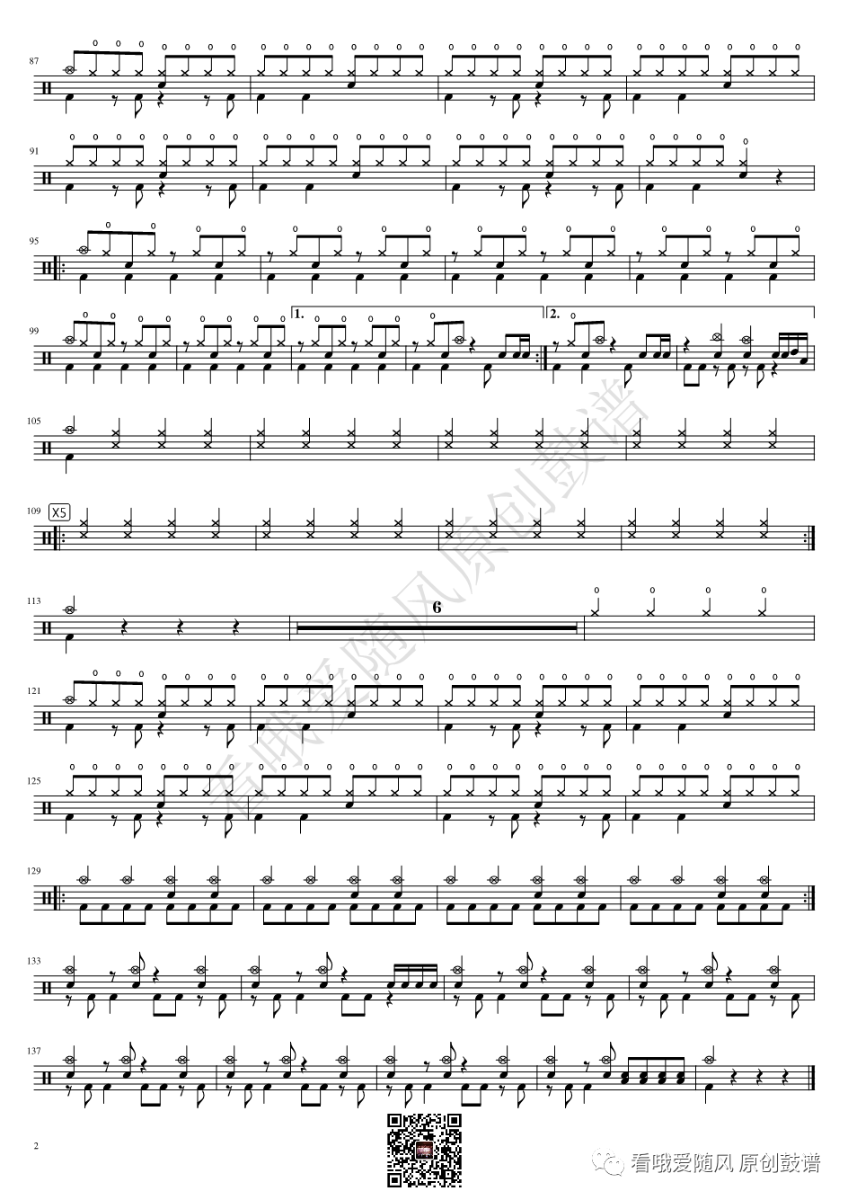 ONEOKROCK《IWasKing》架子鼓谱,看哦爱随风编配出品,共有2张高清图谱,由打鼓谱上传并分享。