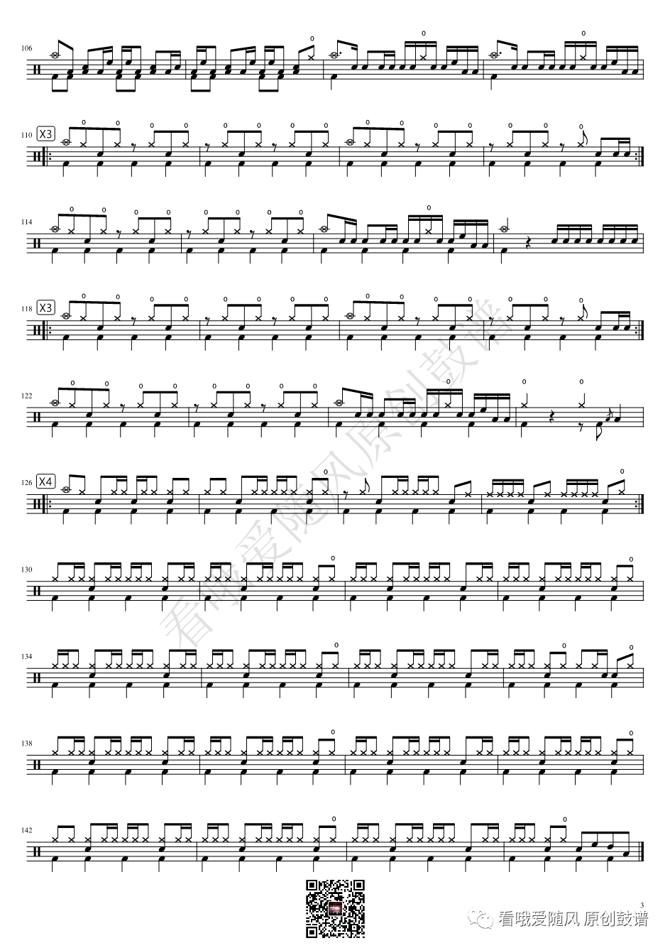 ONEOKROCK《完全感觉Dreamer》架子鼓谱,看哦爱随风编配出品,共有4张高清图谱,由打鼓谱上传并分享。