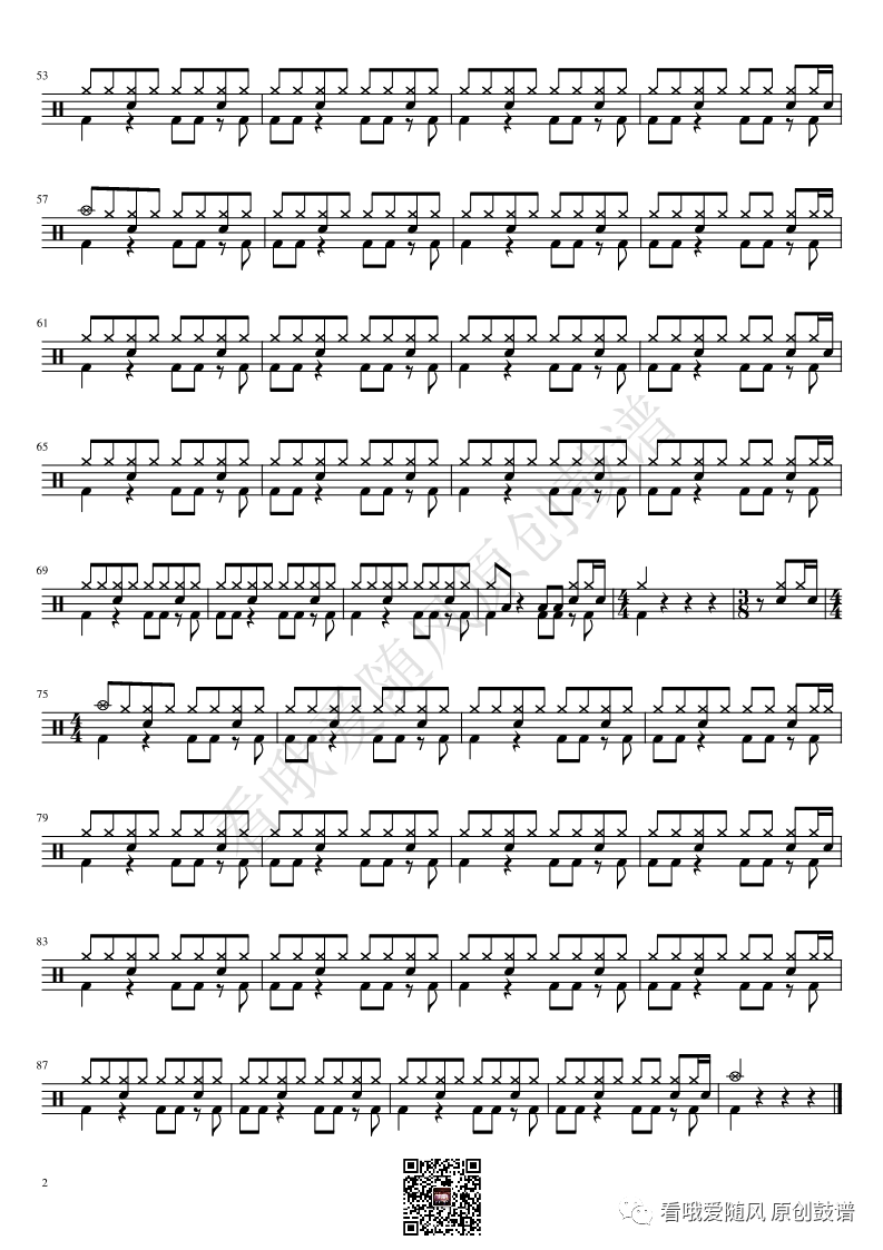 ONEOKROCK《IWasKing》架子鼓谱,看哦爱随风编配出品,共有2张高清图谱,由打鼓谱上传并分享。