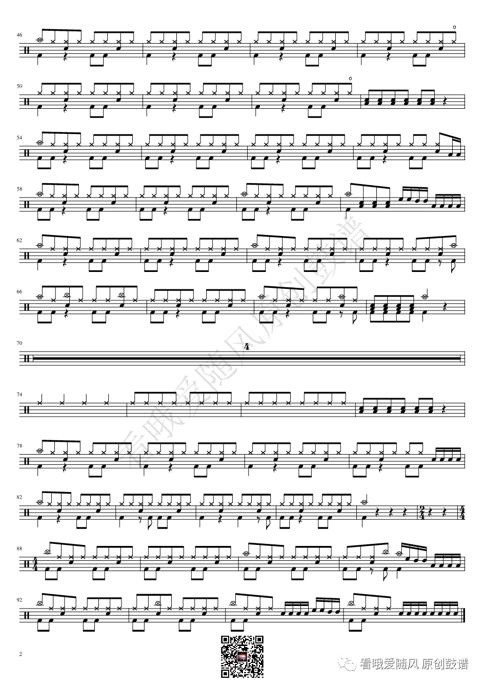 ONEOKROCK《IWasKing》架子鼓谱,看哦爱随风编配出品,共有2张高清图谱,由打鼓谱上传并分享。