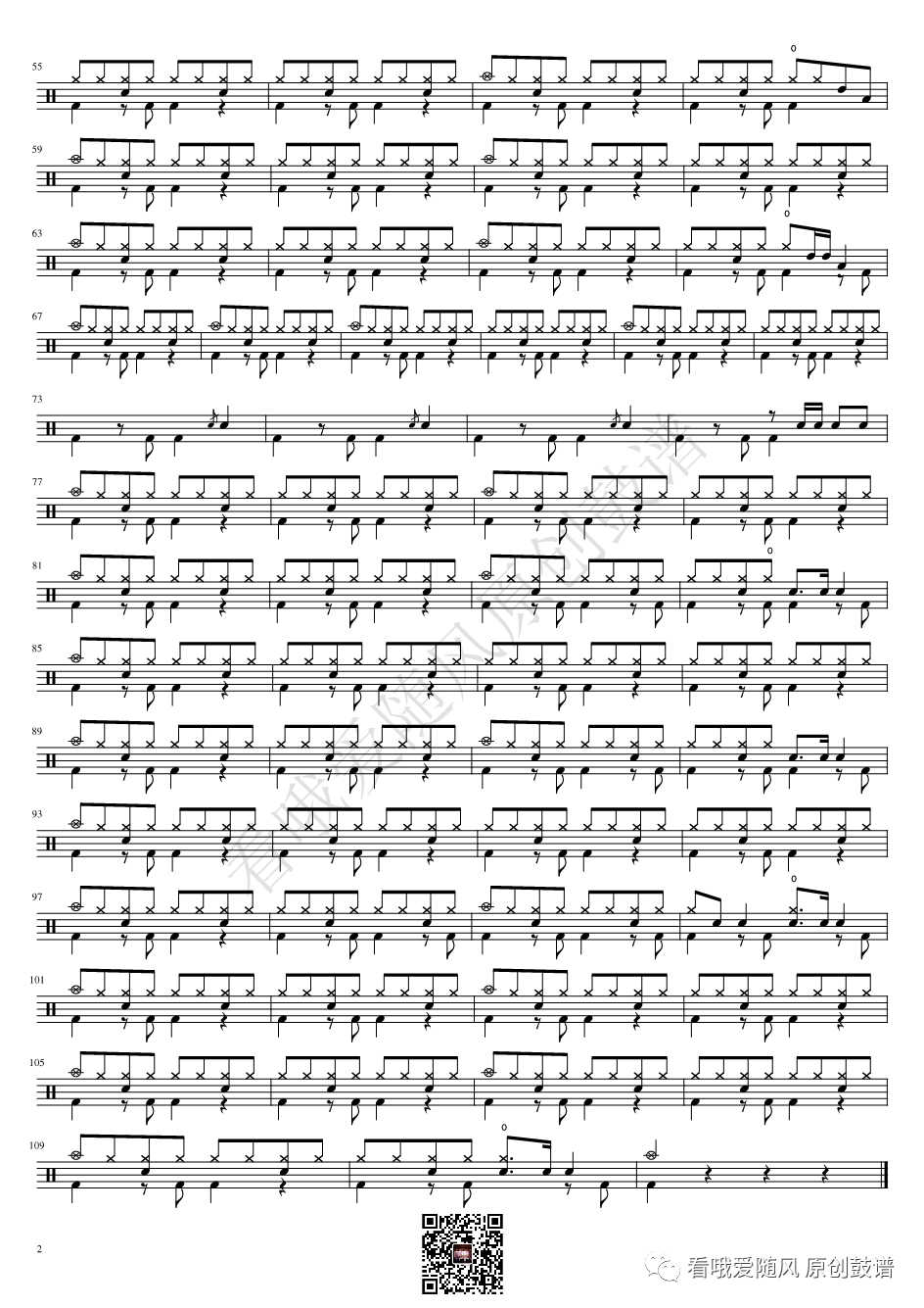ONEOKROCK《IWasKing》架子鼓谱,看哦爱随风编配出品,共有2张高清图谱,由打鼓谱上传并分享。