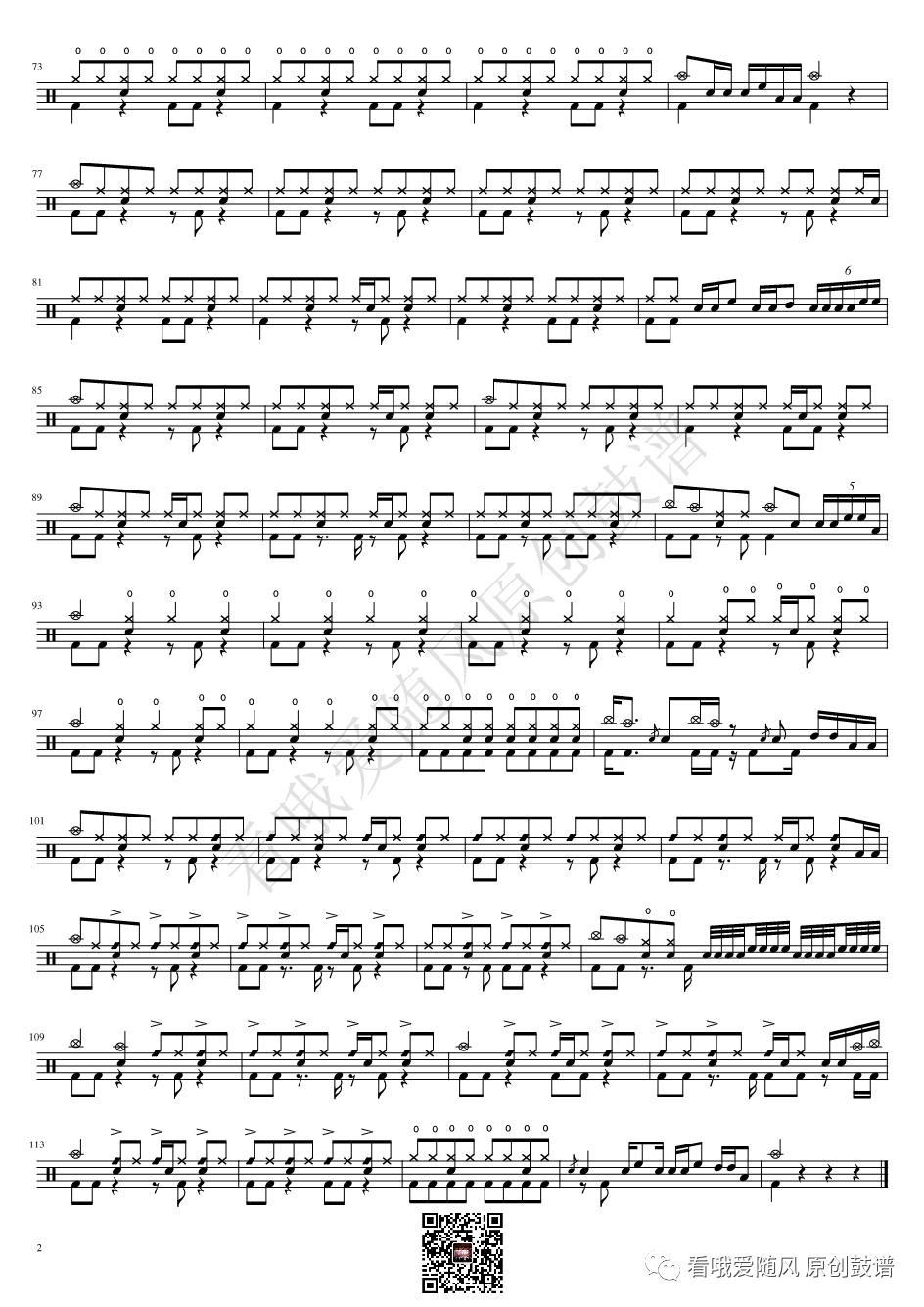 ONEOKROCK《IWasKing》架子鼓谱,看哦爱随风编配出品,共有2张高清图谱,由打鼓谱上传并分享。