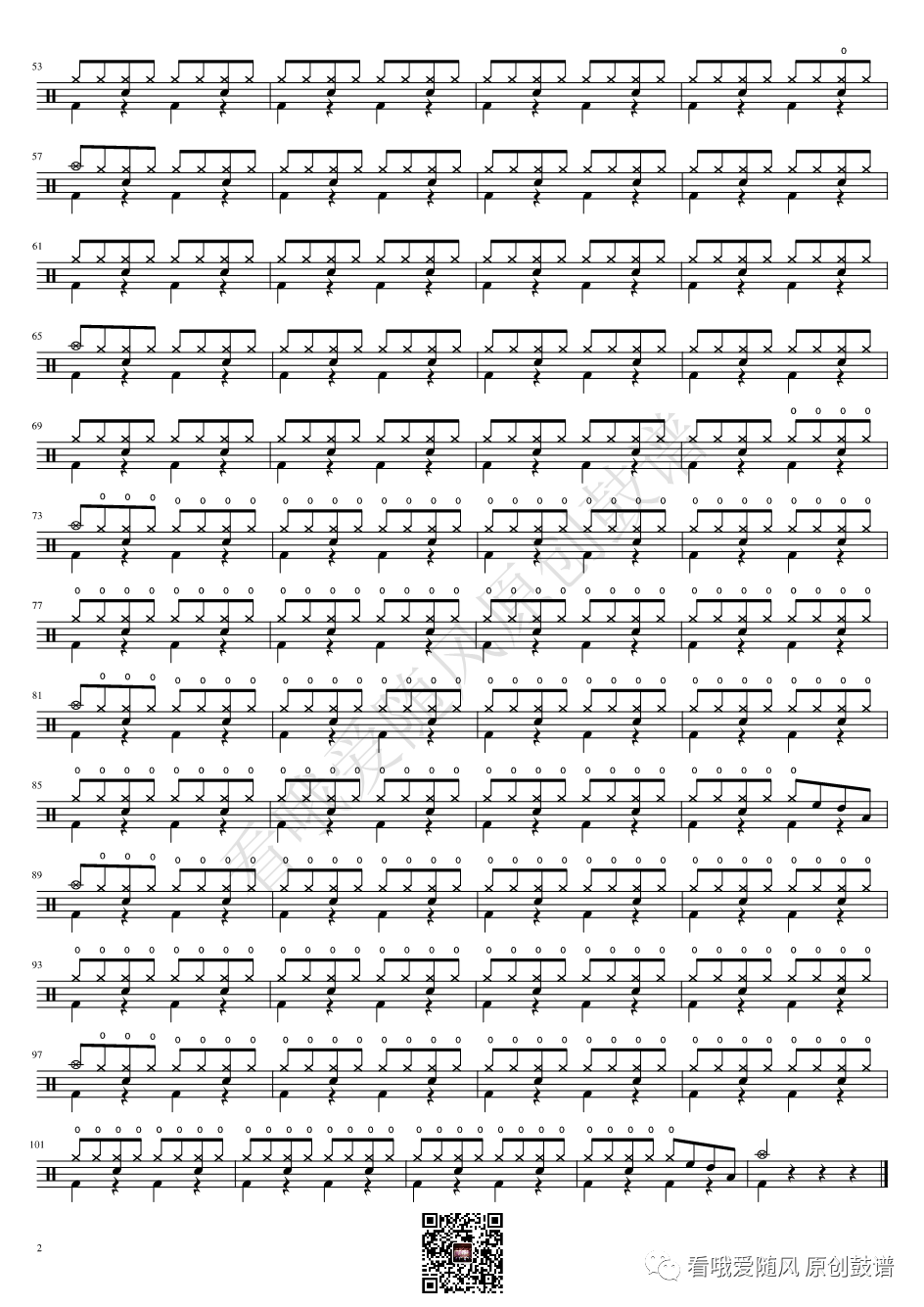 ONEOKROCK《IWasKing》架子鼓谱,看哦爱随风编配出品,共有2张高清图谱,由打鼓谱上传并分享。