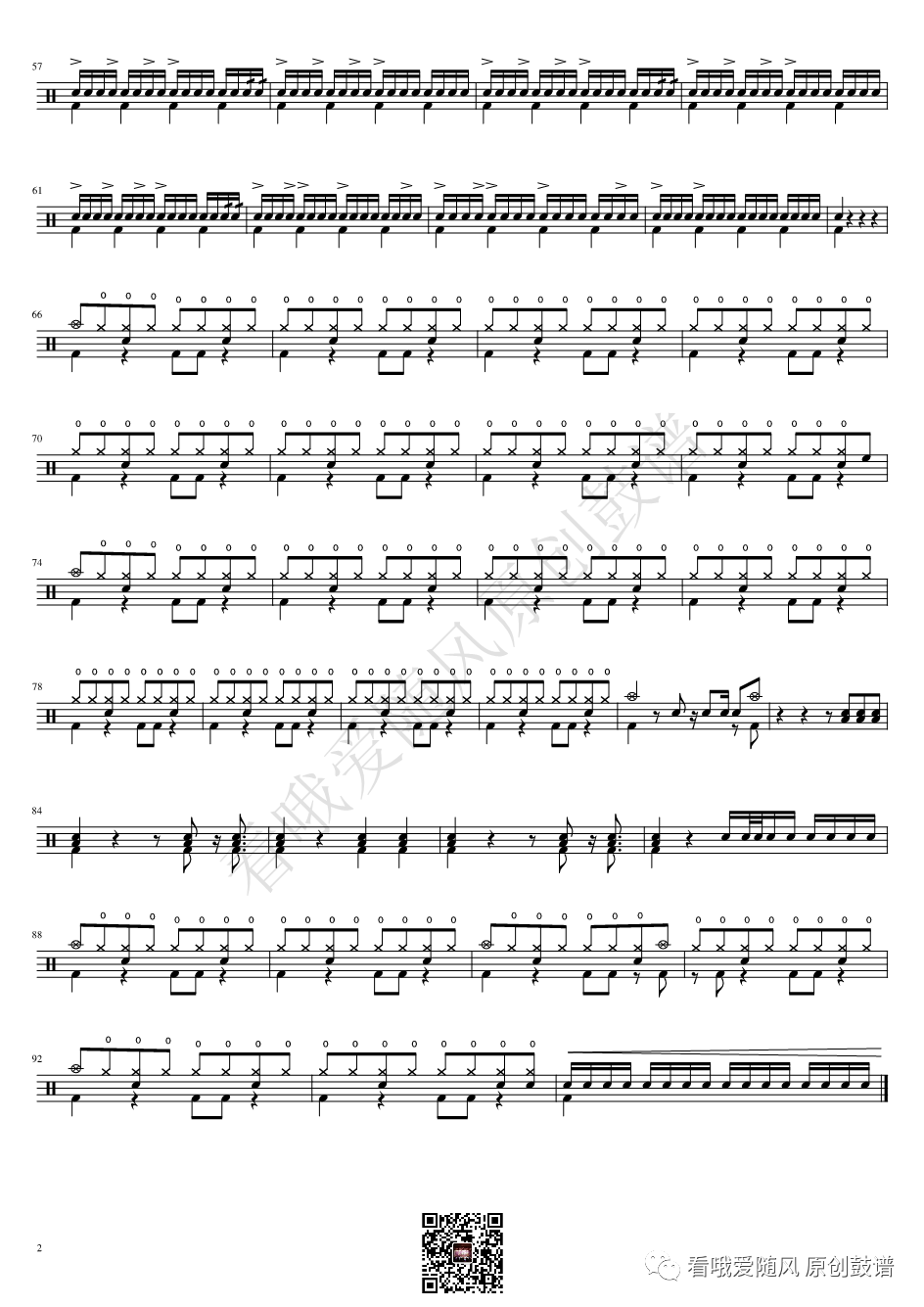 ONEOKROCK《IWasKing》架子鼓谱,看哦爱随风编配出品,共有2张高清图谱,由打鼓谱上传并分享。