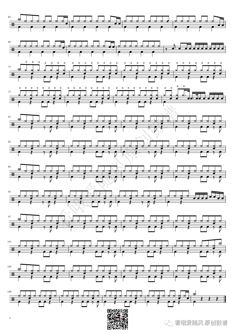 ONEOKROCK《IWasKing》架子鼓谱,看哦爱随风编配出品,共有2张高清图谱,由打鼓谱上传并分享。
