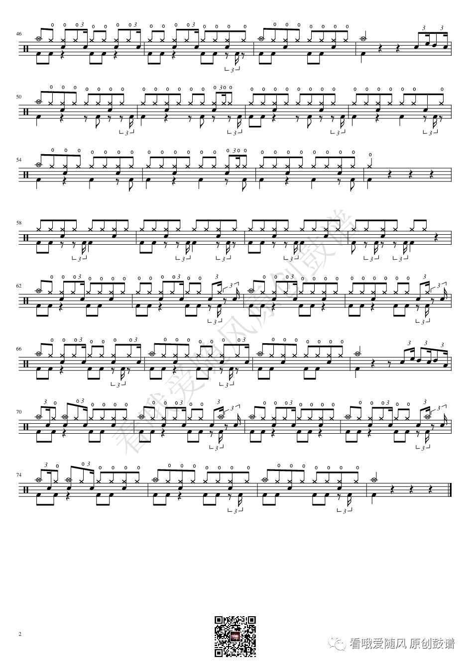 ONEOKROCK《IWasKing》架子鼓谱,看哦爱随风编配出品,共有2张高清图谱,由打鼓谱上传并分享。