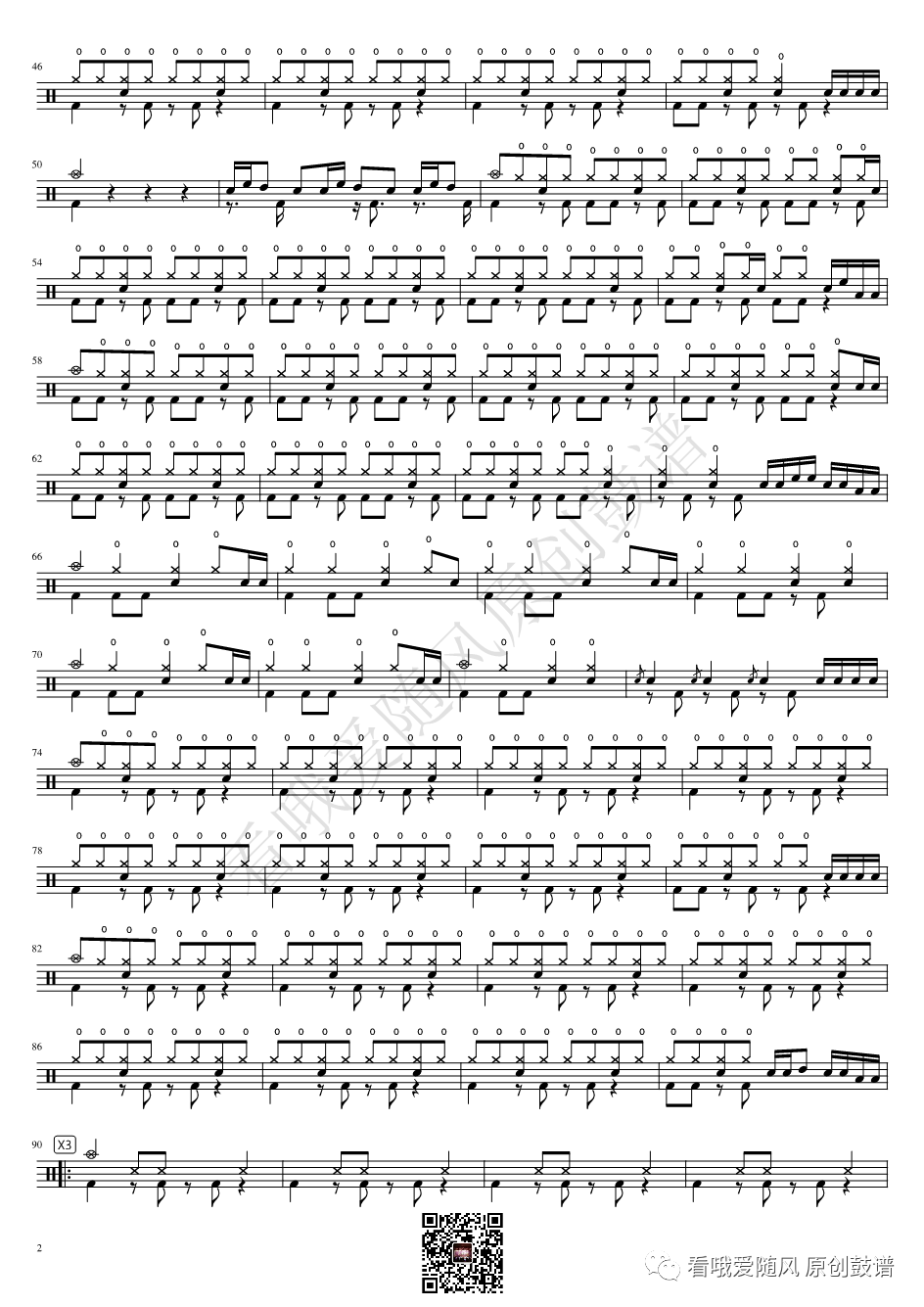 ONEOKROCK《IWasKing》架子鼓谱,看哦爱随风编配出品,共有2张高清图谱,由打鼓谱上传并分享。