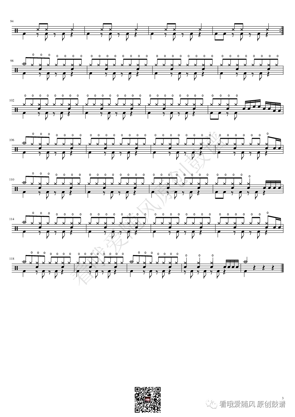 ONEOKROCK《未完成交響曲》架子鼓谱,看哦爱随风编配出品,共有1张高清图谱,由打鼓谱上传并分享。