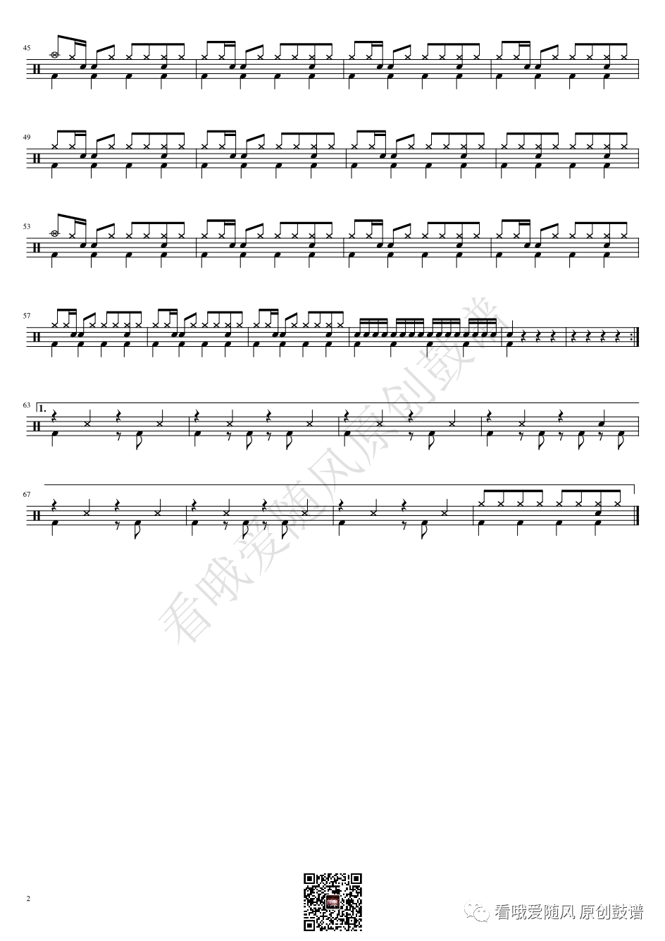 ONEOKROCK《未完成交響曲》架子鼓谱,看哦爱随风编配出品,共有1张高清图谱,由打鼓谱上传并分享。