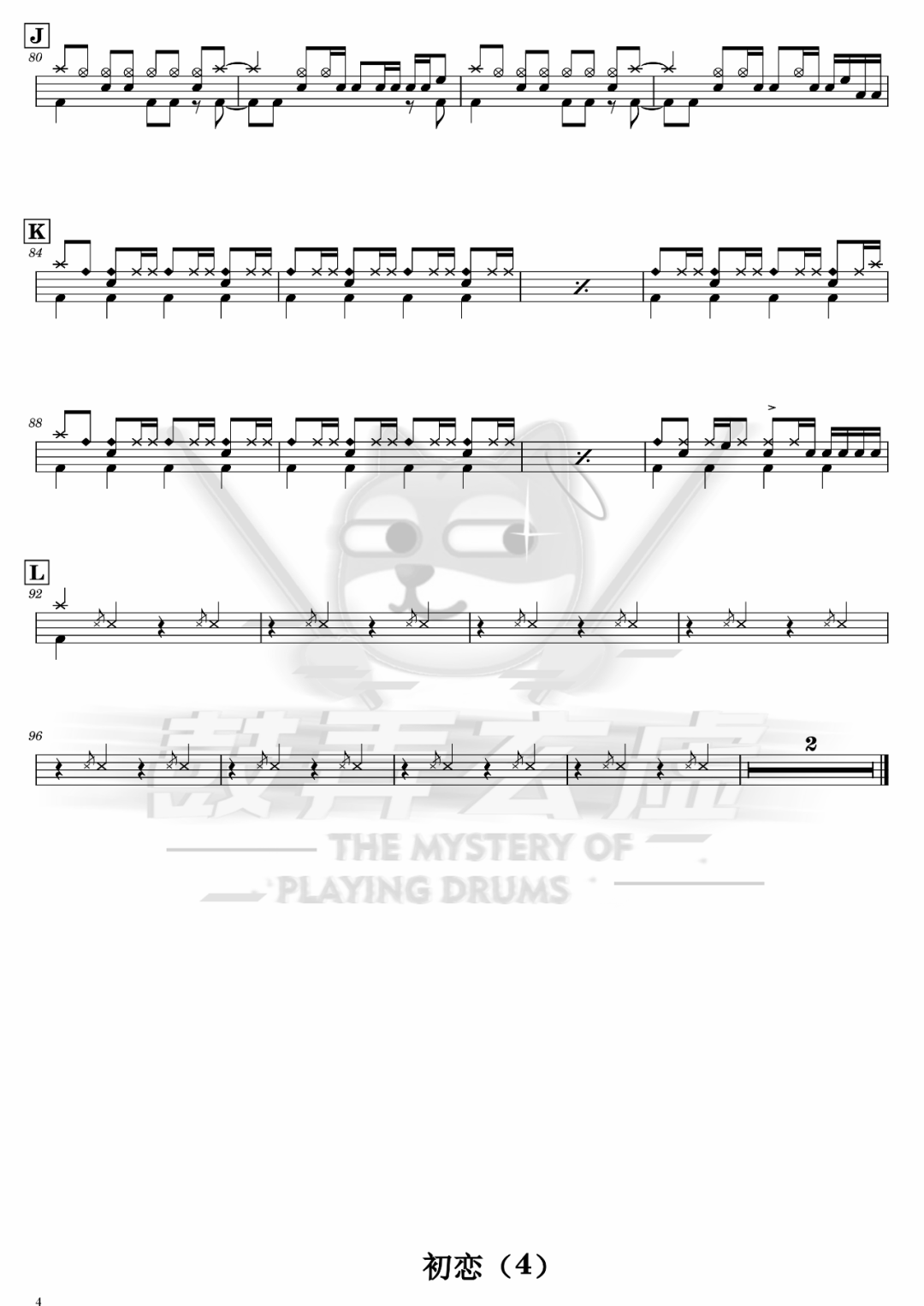 MYFIRSTSTORY《MissingYou》架子鼓谱,看哦爱随风编配出品,共有1张高清图谱,由打鼓谱上传并分享。