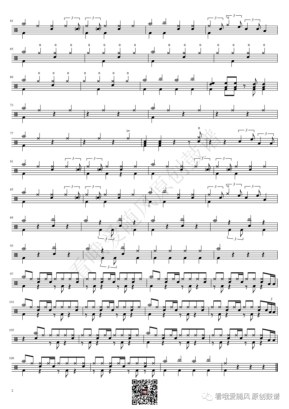 ONEOKROCK《IWasKing》架子鼓谱,看哦爱随风编配出品,共有2张高清图谱,由打鼓谱上传并分享。