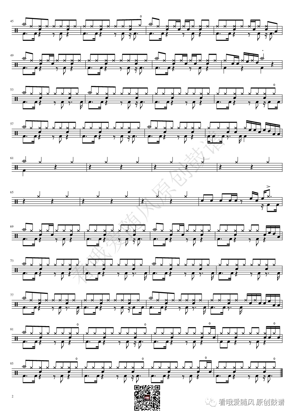 赵雷《朵》架子鼓谱(初级), 看哦爱随风编配出品,共有2张高清图谱,由打鼓谱上传并分享。NO.780 朵(初级)赵雷 鼓谱
