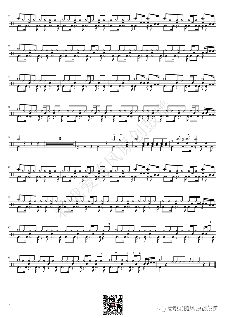 ONEOKROCK《IWasKing》架子鼓谱,看哦爱随风编配出品,共有2张高清图谱,由打鼓谱上传并分享。