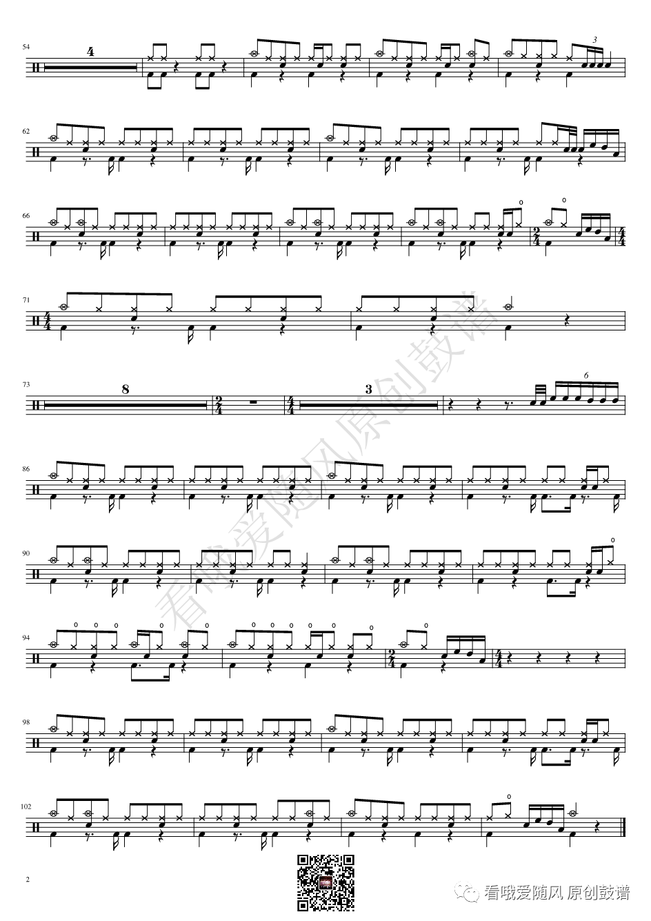ONEOKROCK《IWasKing》架子鼓谱,看哦爱随风编配出品,共有2张高清图谱,由打鼓谱上传并分享。