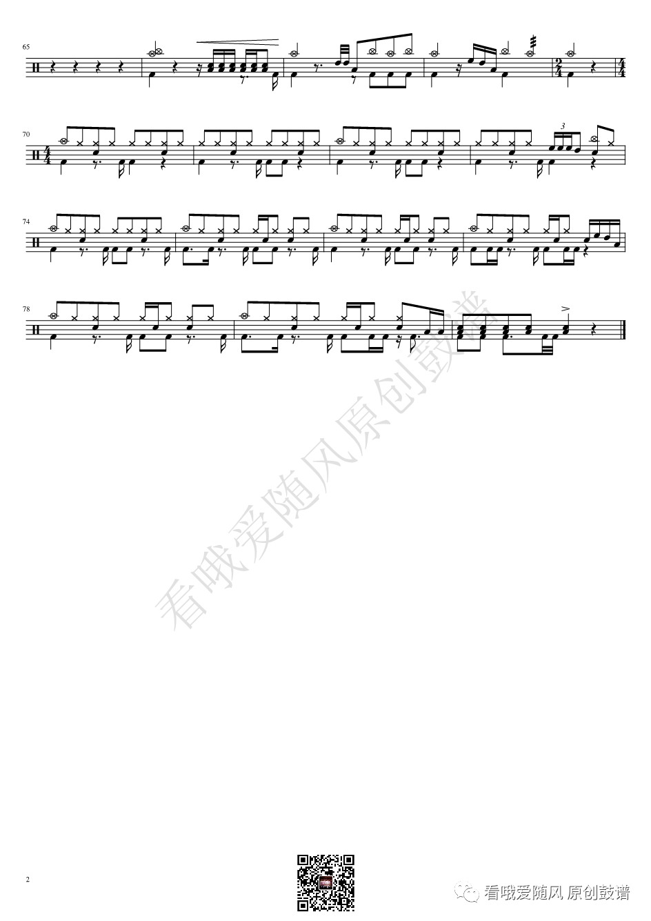ONEOKROCK《IWasKing》架子鼓谱,看哦爱随风编配出品,共有2张高清图谱,由打鼓谱上传并分享。