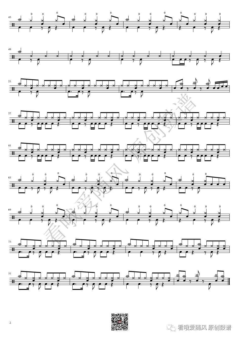 采风乐坊《蓄势(太鼓达人)》架子鼓谱, 看哦爱随风编配出品,共有2张高清图谱,由打鼓谱上传并分享。NO.789 蓄势(太鼓达人)采风乐坊 鼓谱