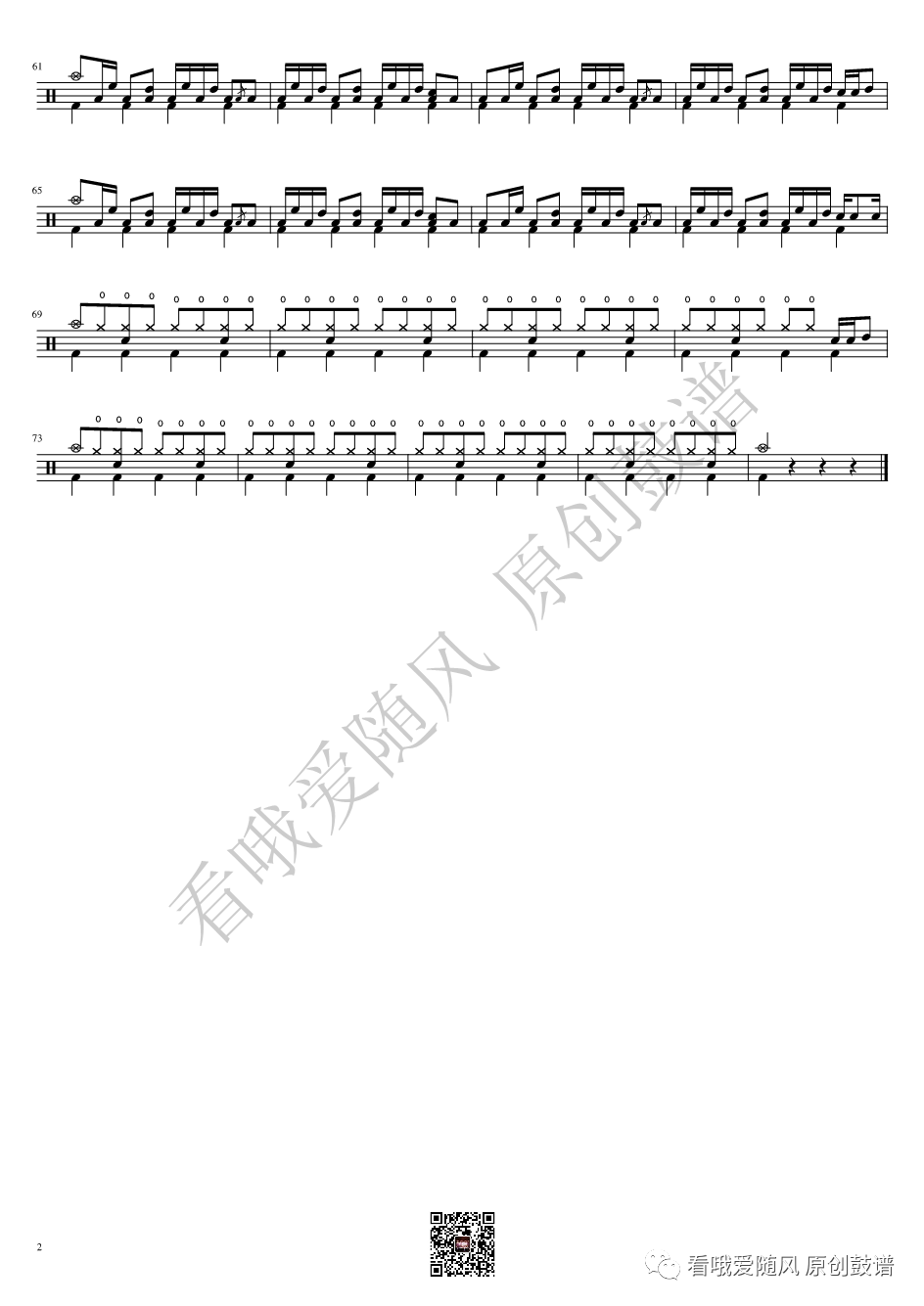 ONEOKROCK《未完成交響曲》架子鼓谱,看哦爱随风编配出品,共有1张高清图谱,由打鼓谱上传并分享。
