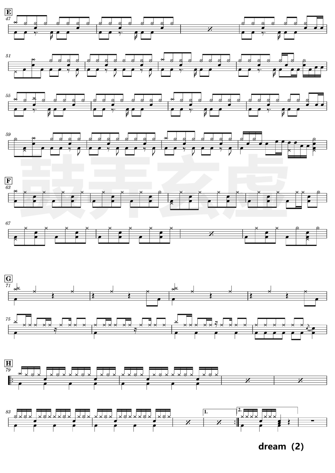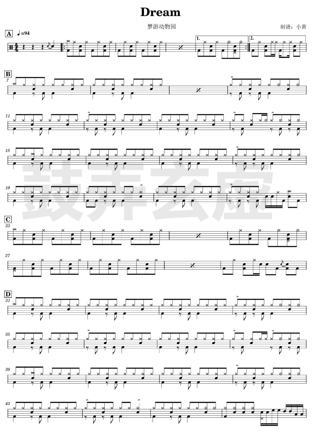 ONEOKROCK《完全感觉Dreamer》架子鼓谱,看哦爱随风编配出品,共有4张高清图谱,由打鼓谱上传并分享。