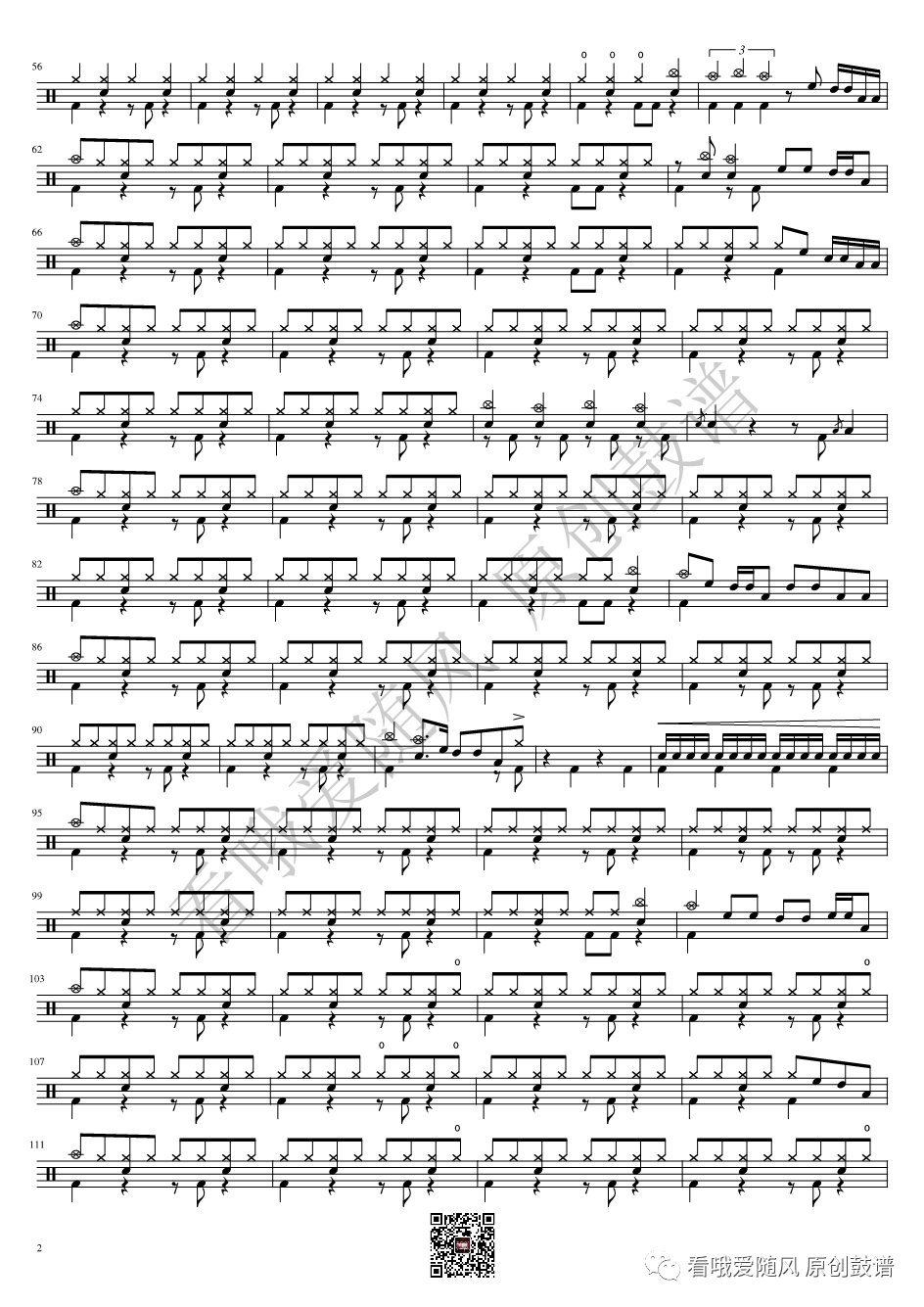 ONEOKROCK《IWasKing》架子鼓谱,看哦爱随风编配出品,共有2张高清图谱,由打鼓谱上传并分享。