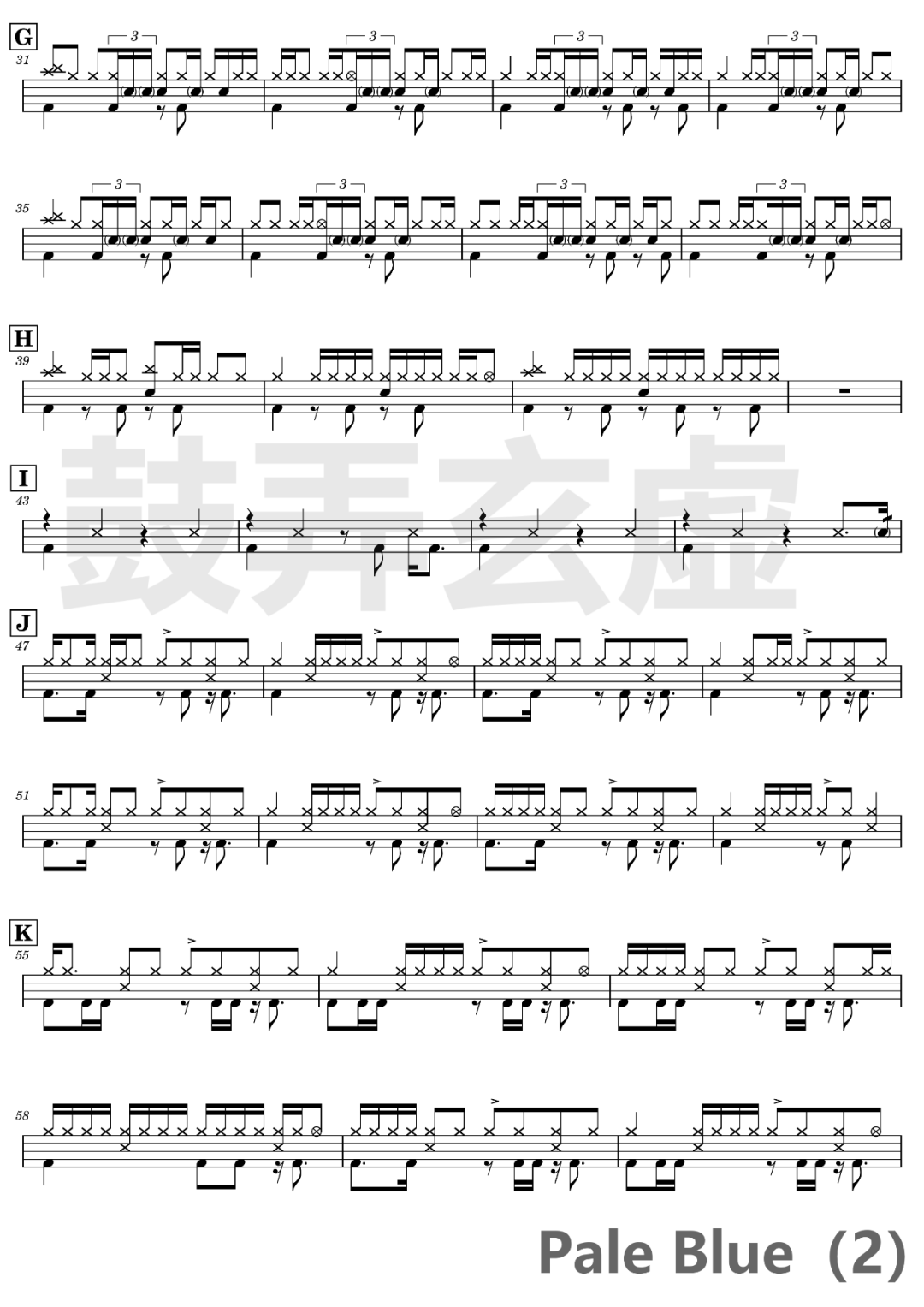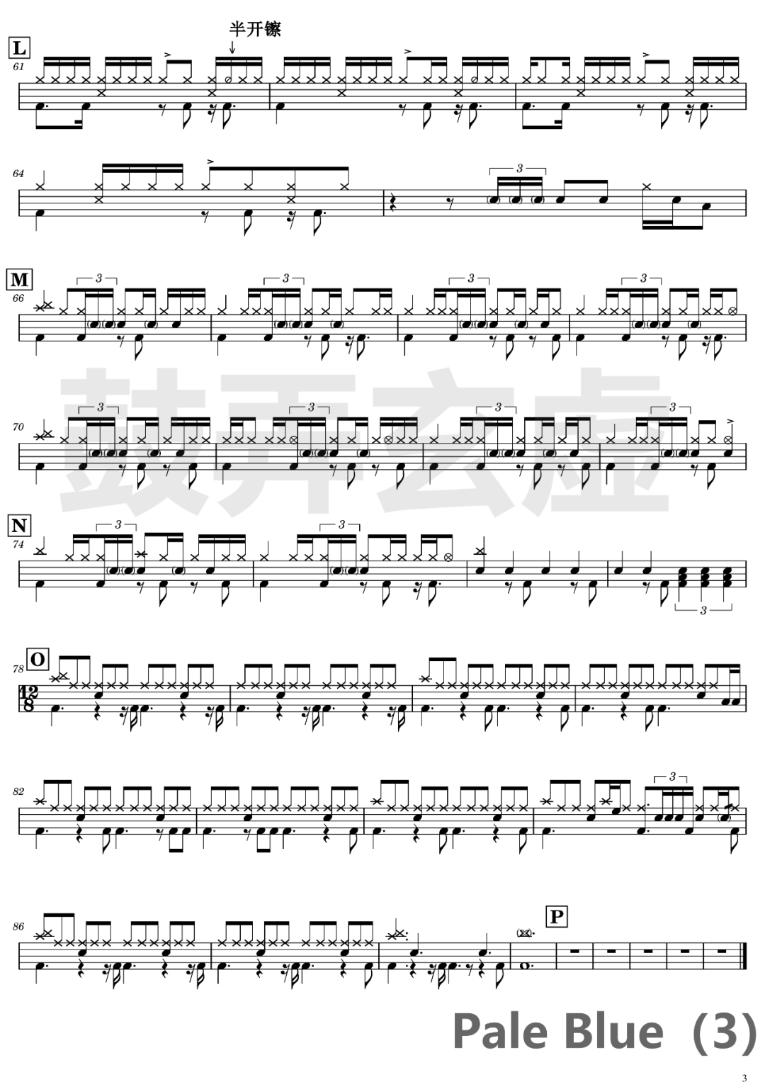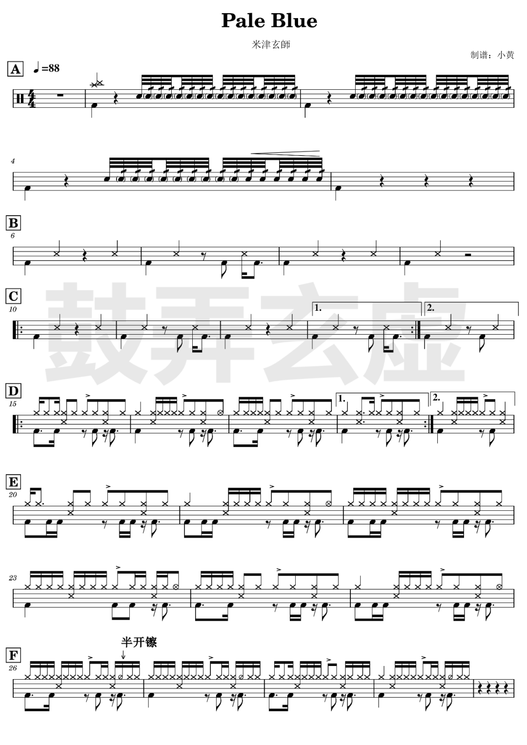 米津玄师《Pale Blue》架子鼓谱,鼓弄玄虚编配出品,共有3张高清图谱,由打鼓谱上传并分享。鼓谱:《Pale Blue》-米津玄师