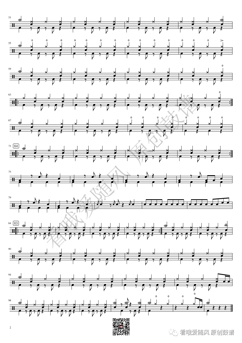 ONEOKROCK《IWasKing》架子鼓谱,看哦爱随风编配出品,共有2张高清图谱,由打鼓谱上传并分享。