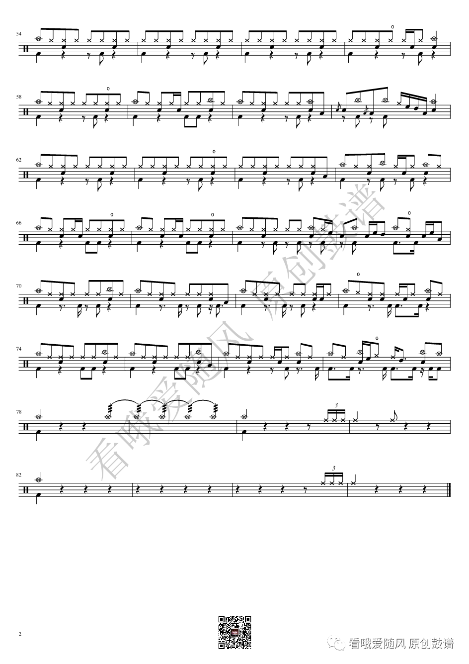 ONEOKROCK《IWasKing》架子鼓谱,看哦爱随风编配出品,共有2张高清图谱,由打鼓谱上传并分享。
