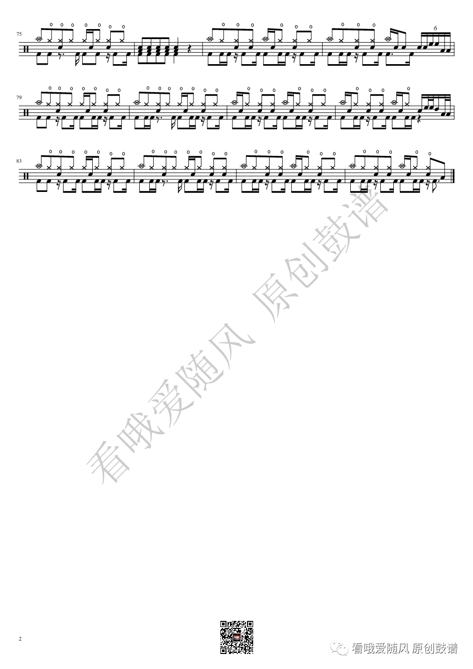 ONEOKROCK《IWasKing》架子鼓谱,看哦爱随风编配出品,共有2张高清图谱,由打鼓谱上传并分享。