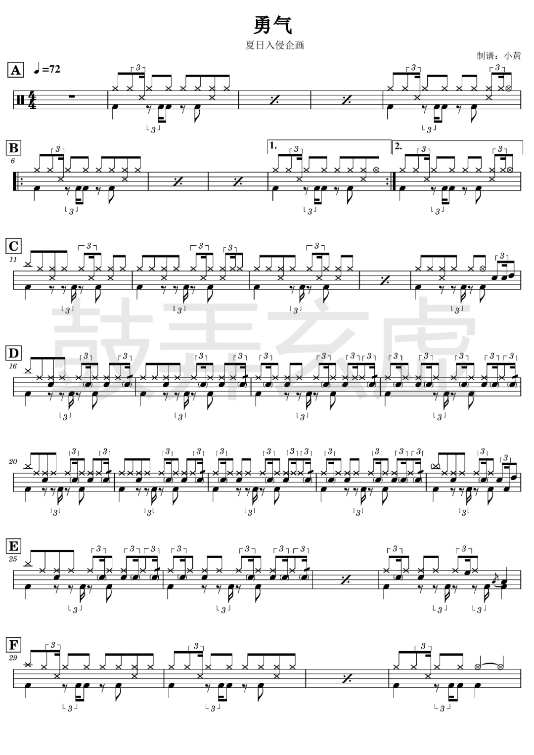 如龙维新OP《ClockStrikes》架子鼓谱,看哦爱随风编配出品,共有1张高清图谱,由打鼓谱上传并分享。