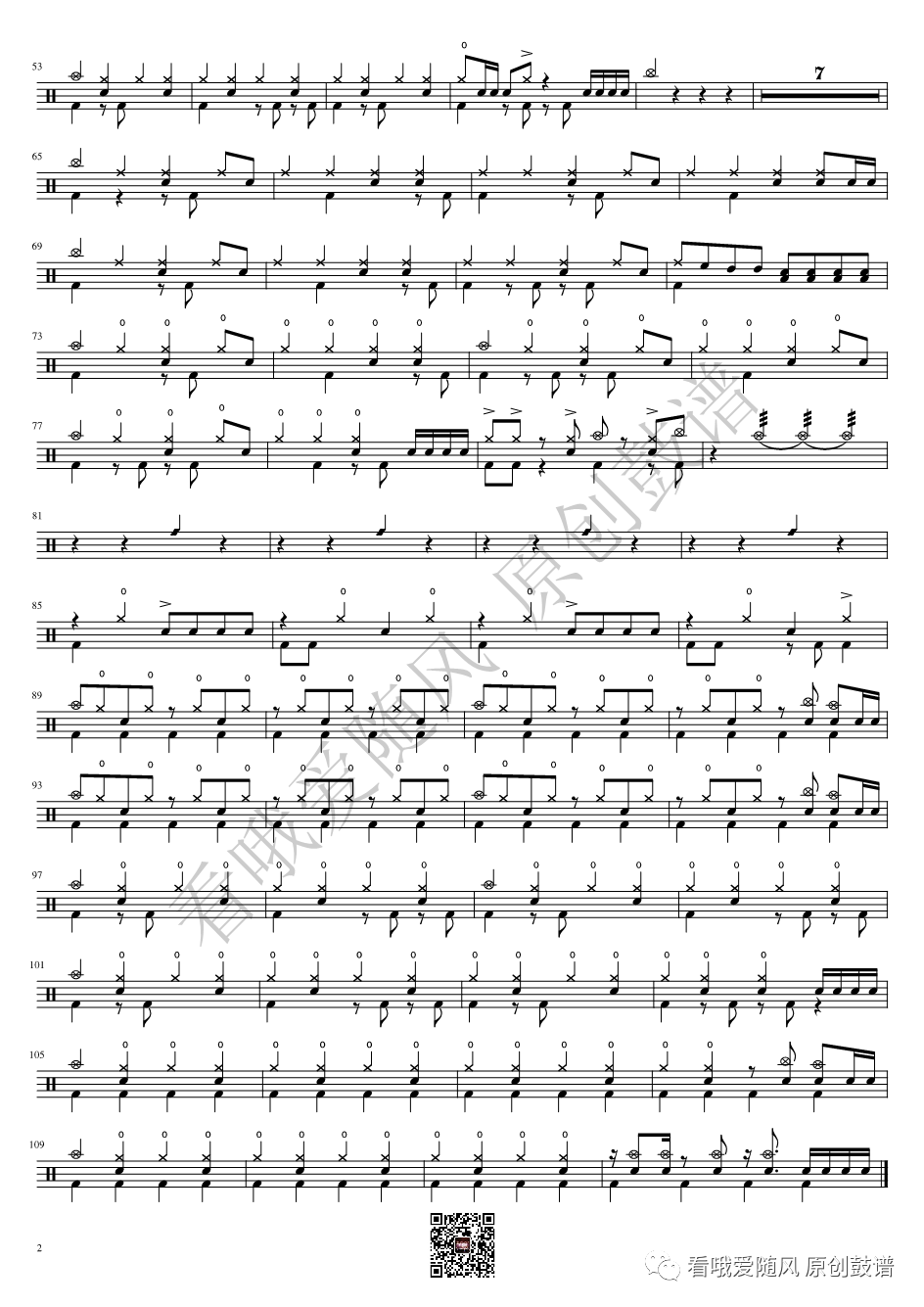 ONEOKROCK《IWasKing》架子鼓谱,看哦爱随风编配出品,共有2张高清图谱,由打鼓谱上传并分享。