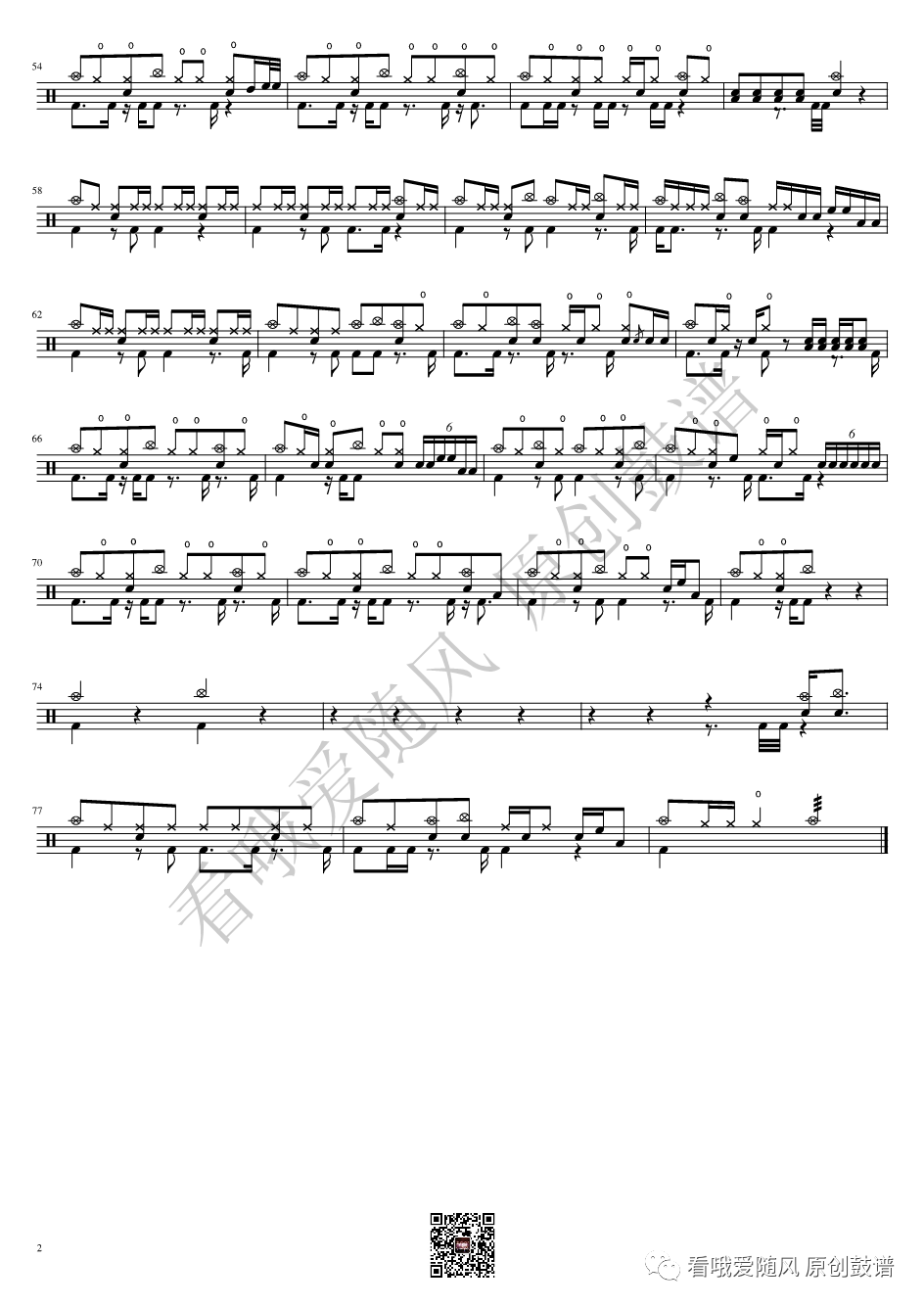 ONEOKROCK《IWasKing》架子鼓谱,看哦爱随风编配出品,共有2张高清图谱,由打鼓谱上传并分享。