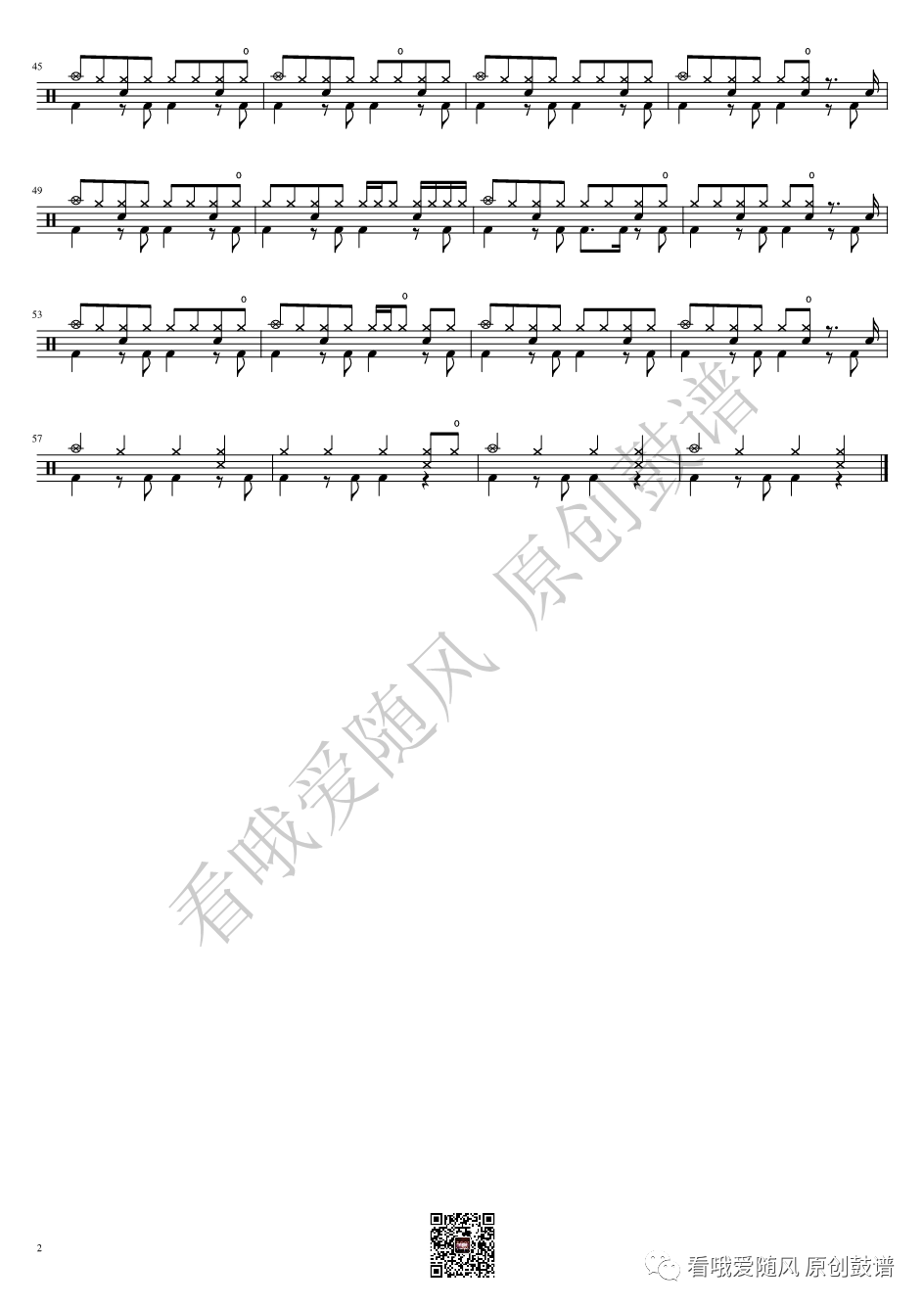 ONEOKROCK《IWasKing》架子鼓谱,看哦爱随风编配出品,共有2张高清图谱,由打鼓谱上传并分享。