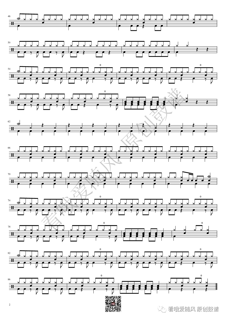 ONEOKROCK《IWasKing》架子鼓谱,看哦爱随风编配出品,共有2张高清图谱,由打鼓谱上传并分享。