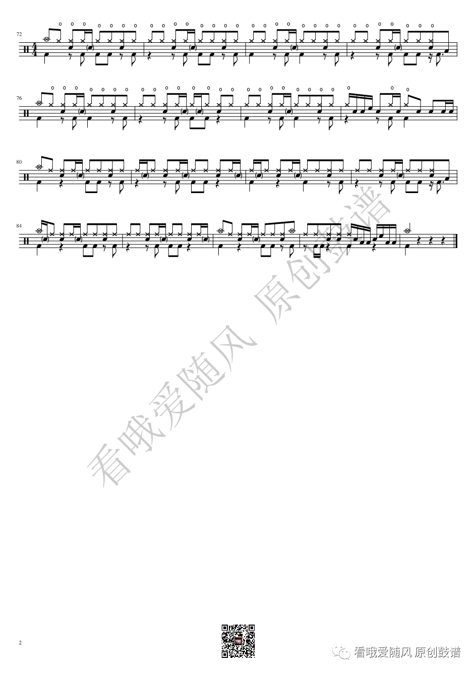 ONEOKROCK《IWasKing》架子鼓谱,看哦爱随风编配出品,共有2张高清图谱,由打鼓谱上传并分享。